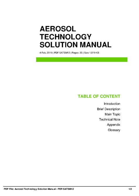 Download AEROSOL TECHNOLOGY SOLUTION MANUAL PDF Free Download & Read PDF